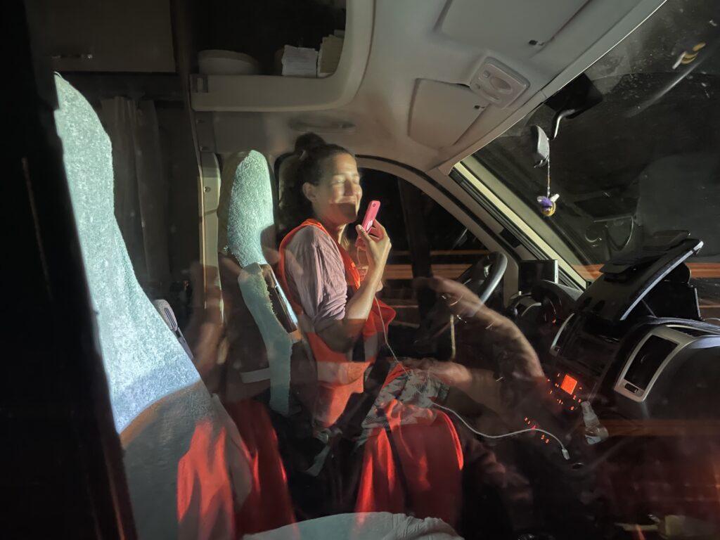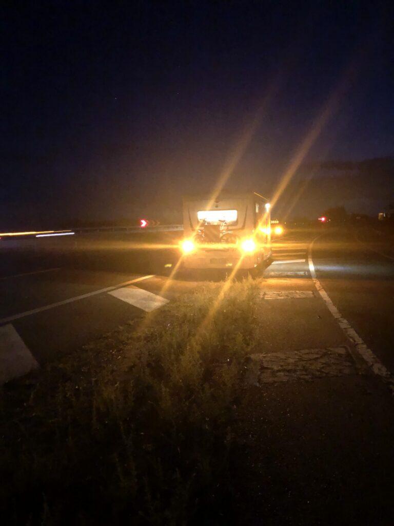 Dann informierte uns der ADAC gegen 22 Uhr darüber, dass es sein könne, dass es keinen Abschleppwagen für die Größe unseres Fahrzeugs gibt und wir uns in einer Stunde nochmal melden sollten und vielleicht die Polizei hinzugezogen werden müsse. Oh no! Ich (Rebekka) habe schon darüber nachgedacht, wie wir am besten neben der Autobahn campieren könnten. Was wir Gott sei Dank nicht mussten.