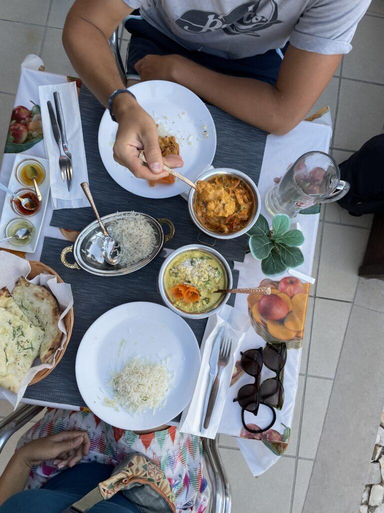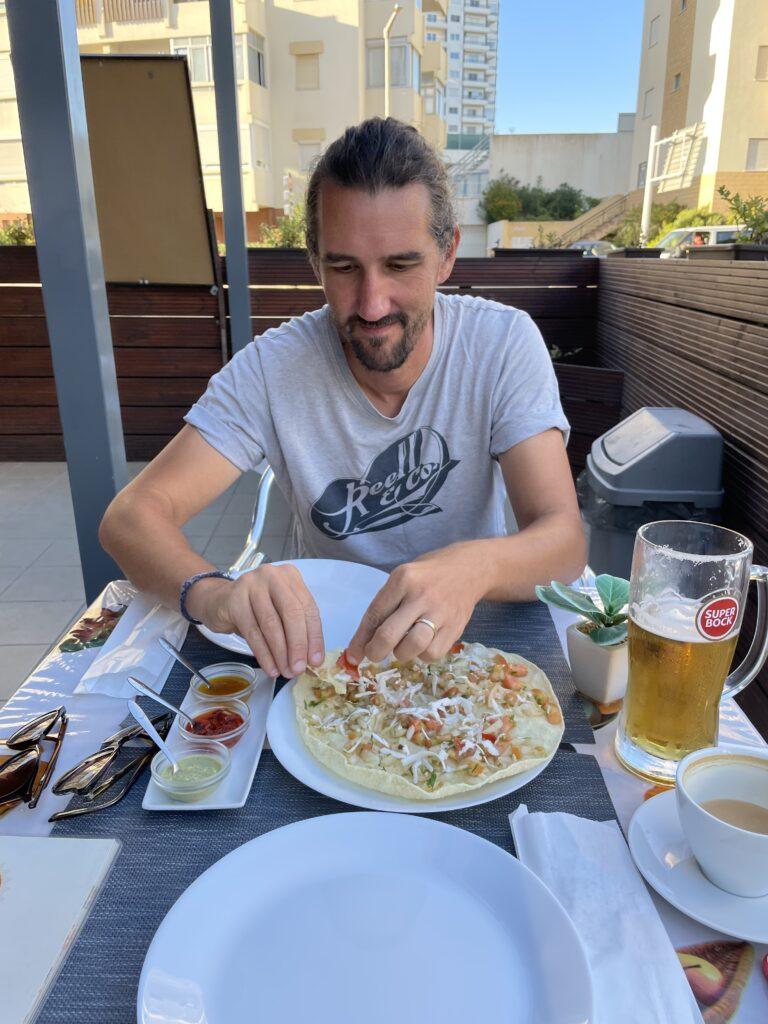 Routine 2: Dann haben wir uns erstmal an den Strand gelegt und gelesen. Andi hat tatsächlich gelesen, was wirklich an ein Wunder grenzt. „Lauf Jane lauf“, ein Buch, das ich in meiner Jugend gelesen hatte. Routine 3: Danach sind wir meistens noch einkaufen gegangen oder in eine Strandbude unseres Vertrauens, um ein Käse, Tomaten, Zwiebeltoast oder indisch zu essen.