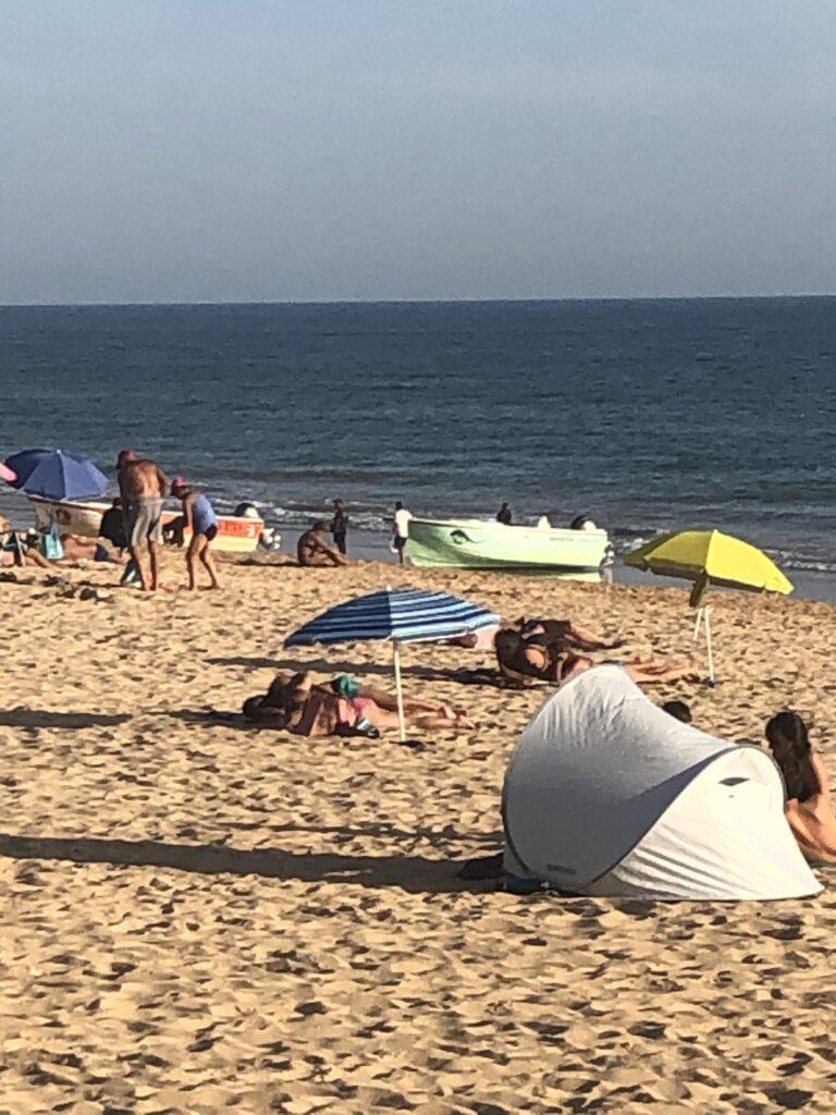 Am Strand war einer unserer ersten Käufe ein großes, schönes Strandtuch. Ich (Rebekka) habe es zum Glück auf 7 Euro runtergehandelt. Hätte ich es 2Euro weiter runter gehandelt, wären wir beim reguläre Preis der umliegenden Strandbuden gelandet. Das schöne Tuch wurde zu unserem Lebensretter und wurde zum provisorische Seitenteil und brachte uns erheblich mehr Schatten.