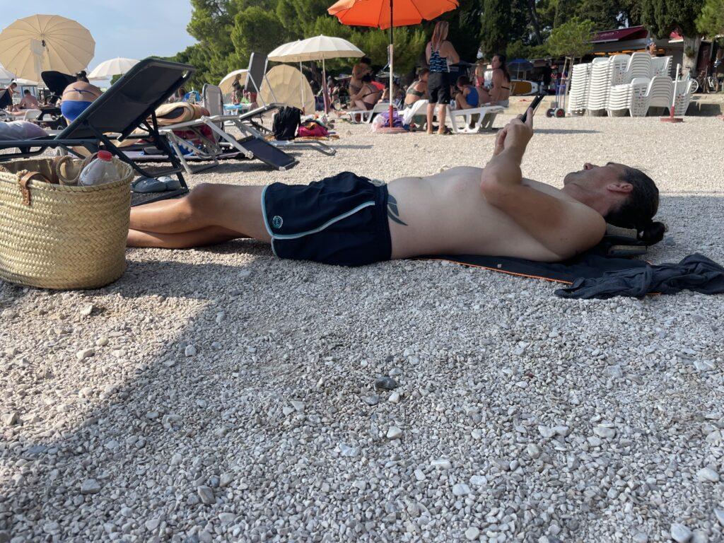 Biograd na Moru war ein echter Kontrast zu den ruhigen Orten, die wir bisher besucht hatten. Die Stadt fühlte sich wie eine typische Touristenhochburg an – überlaufen, teuer und irgendwie nicht besonders einladend. Als wir dort ankamen, war die erste Überraschung die Menschenmenge, die sich an jedem Strandabschnitt drängte. Wir mussten also ziemlich weit laufen um dem Tourismus zu entkommen.