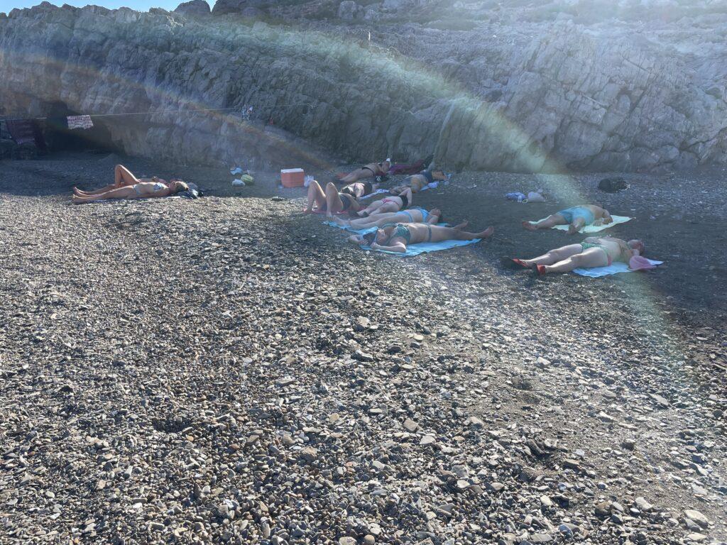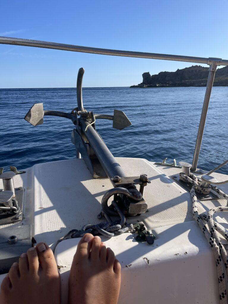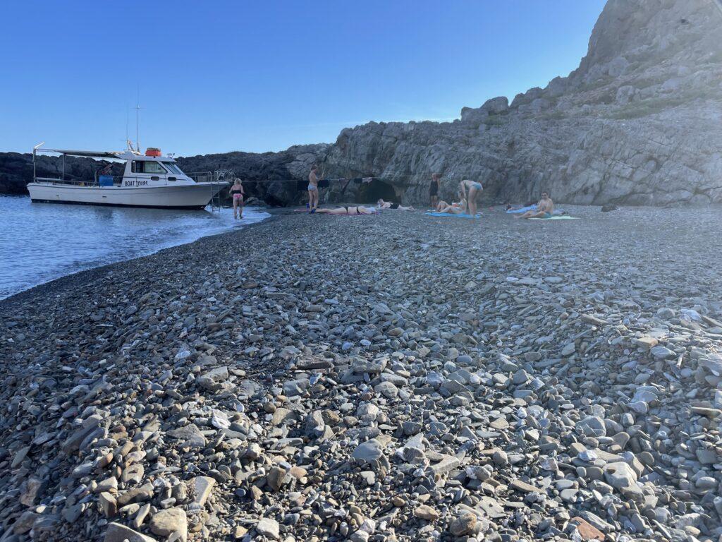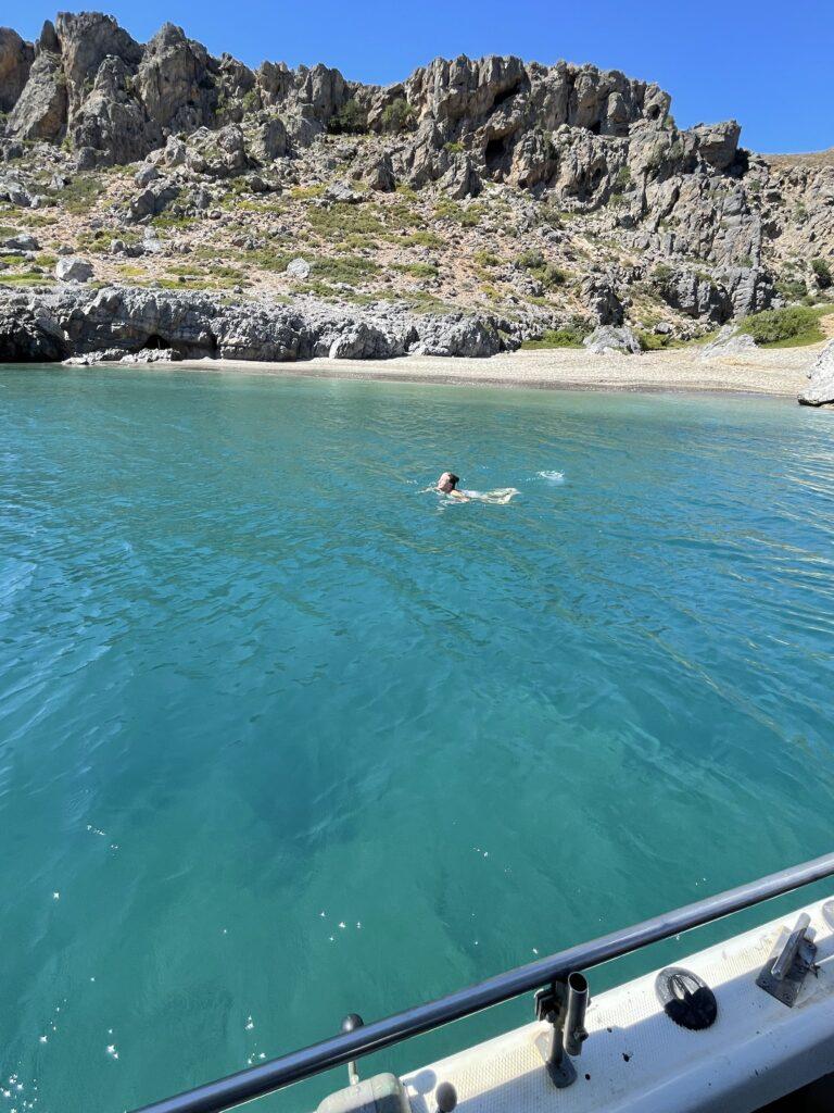 Natürlich war das Seminar selbst großartig, aber das Drumherum? Fast noch besser! Ein Highlight war eine gemeinsame Bootstour, bei der wir Pause fürs Schwimmen einlegten und einen besonderen Salat serviert bekamen. Und das Beste daran? Der wurde mit trockenem Brot gereicht, das man kurz ins Meer tauchte, um es aufzuweichen – unglaublich lecker und total besonders!